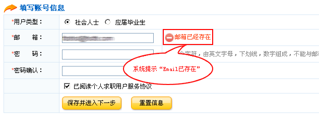 请在注册前先检测帐号,邮箱是否已经被注册。